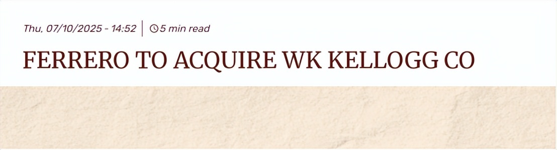 據公開資料,費列羅是全球第三大巧克力糖果製造商,旗下擁有"費列羅Rocher"、Nutella、健達繽紛樂、健達奇趣蛋等知名品牌。此次收購標的WK Kellogg是家樂氏(Kellogg’s)分拆後的子公司,主營北美穀物食品業務,核心產品包括"Froot Loops"(彩圈圈穀物麥片)、“Frosted Flakes”(香甜玉米片)等。家樂氏另一子公司Kellanova則保留品客薯片等業務,此前瑪氏食品曾宣佈以360億美元收購Kellanova,該交易仍在進行中。