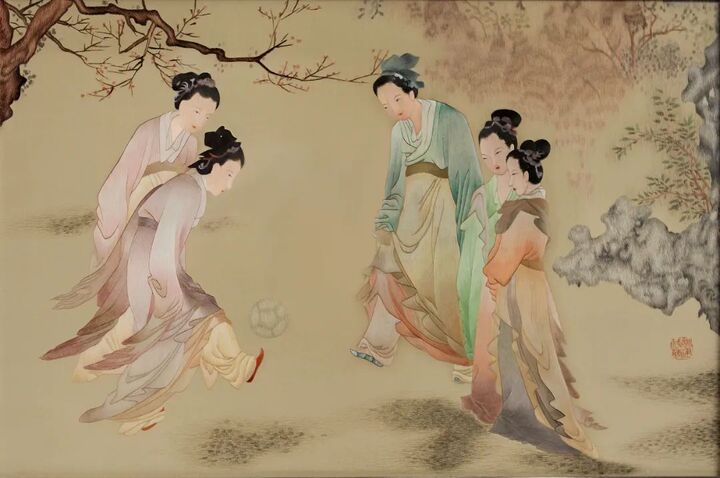 在展演中,姚卓還用創新針法現場繡制《仕女蹴鞠圖》。這幅作品的原作是由她的母親——蘇繡國家級非遺代表性傳承人姚建萍創作,其題材取自明代畫家杜堇的一幅名作,刺繡大師採用經典的雙面繡手法,展現了明朝中國女性在花園裏蹴鞠的美好畫面。這幅原作於2017年1月18日被作為國禮贈送給國際奧委會,並永久陳列在國際奧委會總部奧林匹克博物館。