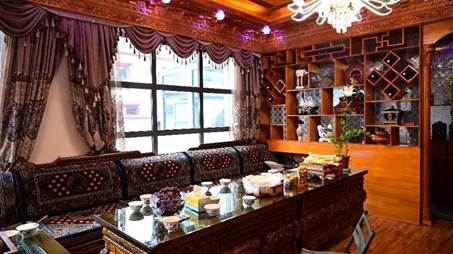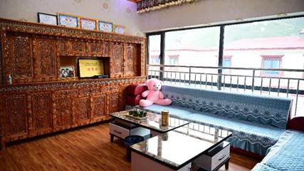 村民贊拉家中的傳統藏式客廳。新華網發 劉蒙青攝