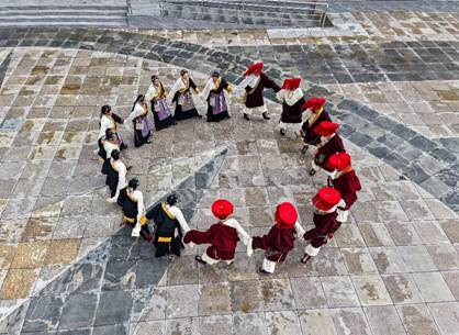 村民在排練場跳鍋莊。新華網發 彭瑋希攝