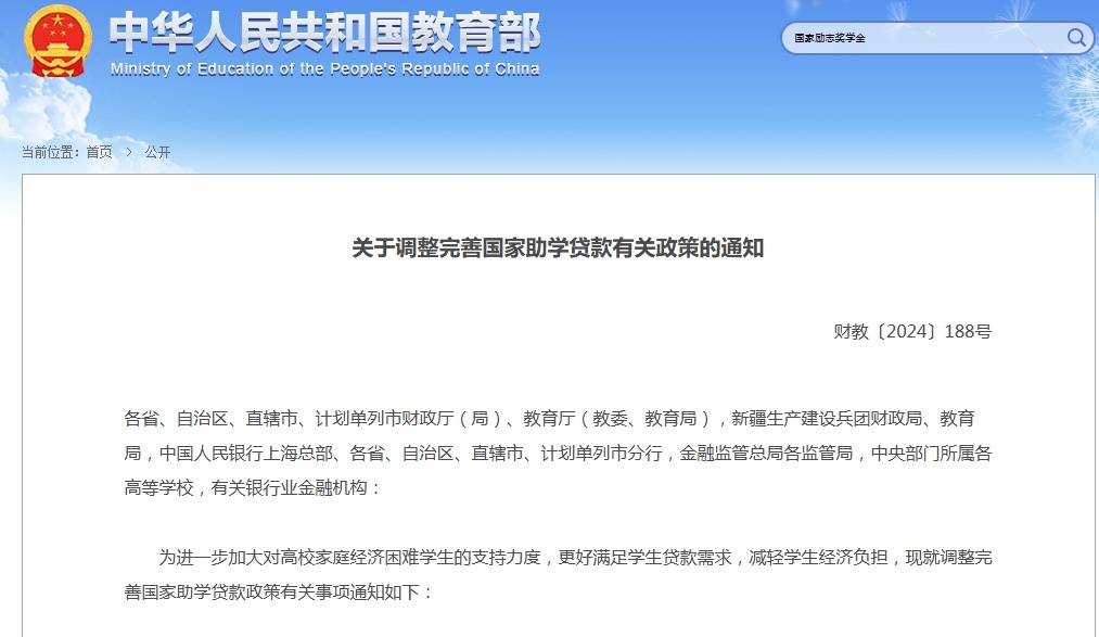 去年,教育部等四部門發佈《關於調整完善國家助學貸款有關政策的通知》,明確自2024年秋季學期起↓