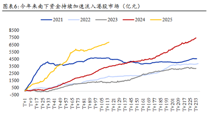 針對港股後期走勢,華福證券認為驅動本輪港股走強的因素並未出現反轉,我國經濟基本面韌性強,並且當前處於盈利下行週期尾聲階段,疊加一系列政策利好出台,市場風險偏好顯著改善;此外南下資金仍在持續加速流入港股市場,流動性環境整體較為友好,並且後續有望進一步流入推動港股行情向好前進。