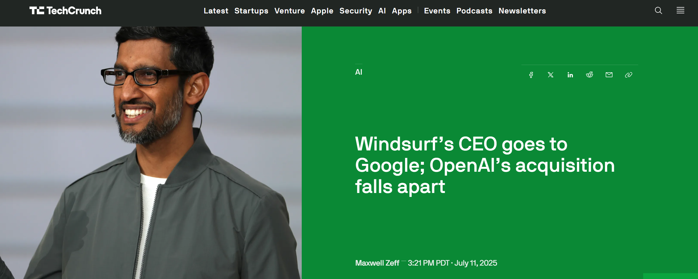 OpenAI 收購 Windsurf 交易失敗 谷歌吸納其核心團隊