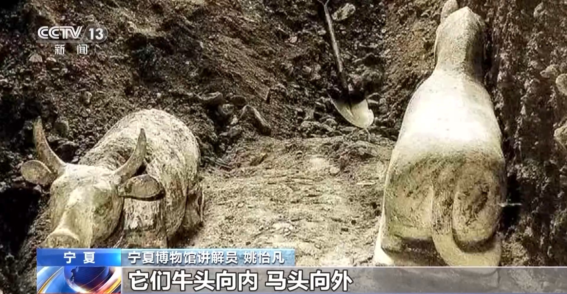 *寧夏博物館講解員 姚怡凡:*大石馬和鎏金銅牛,它們牛頭向內,馬頭向外,代表的是當時遊牧民族“馬出則征戰,牛入則耕作”的這樣一種生活形式,他們非常崇拜農耕文明,馬和牛都是他們生活中非常重要的夥伴,也讓我們看到了在這一時期草原遊牧民族文化的交流交往和交融的展現。