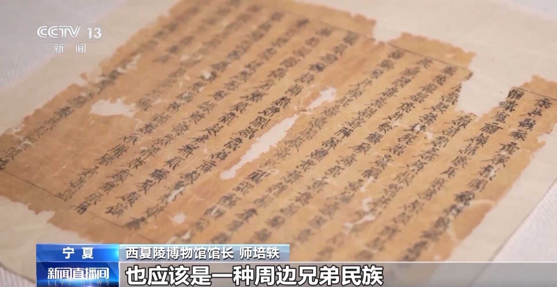 *西夏陵博物館館長 師培軼:*當時和北宋並列的遼國和金國,包括西夏在內,無一例外去仿照漢字去創制自己的文字,也應該是一種周邊兄弟民族對華夏文明、對中原文化的一種嚮往和認同。