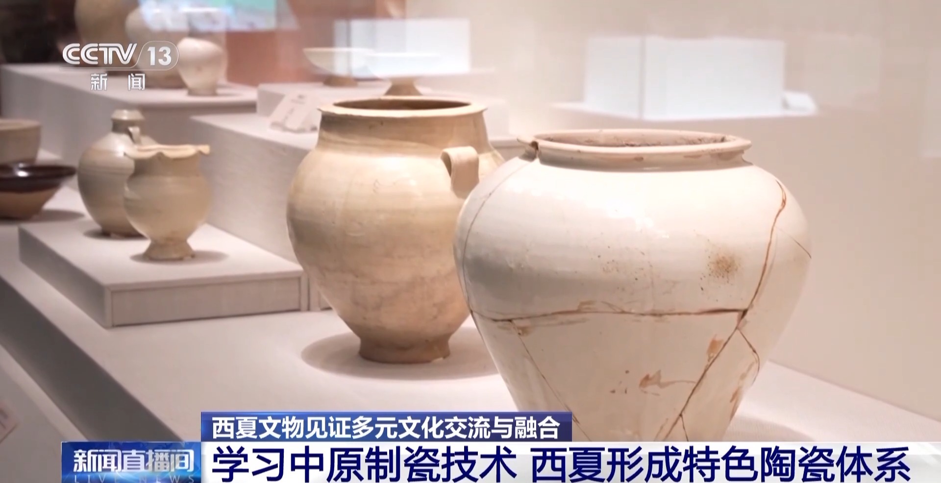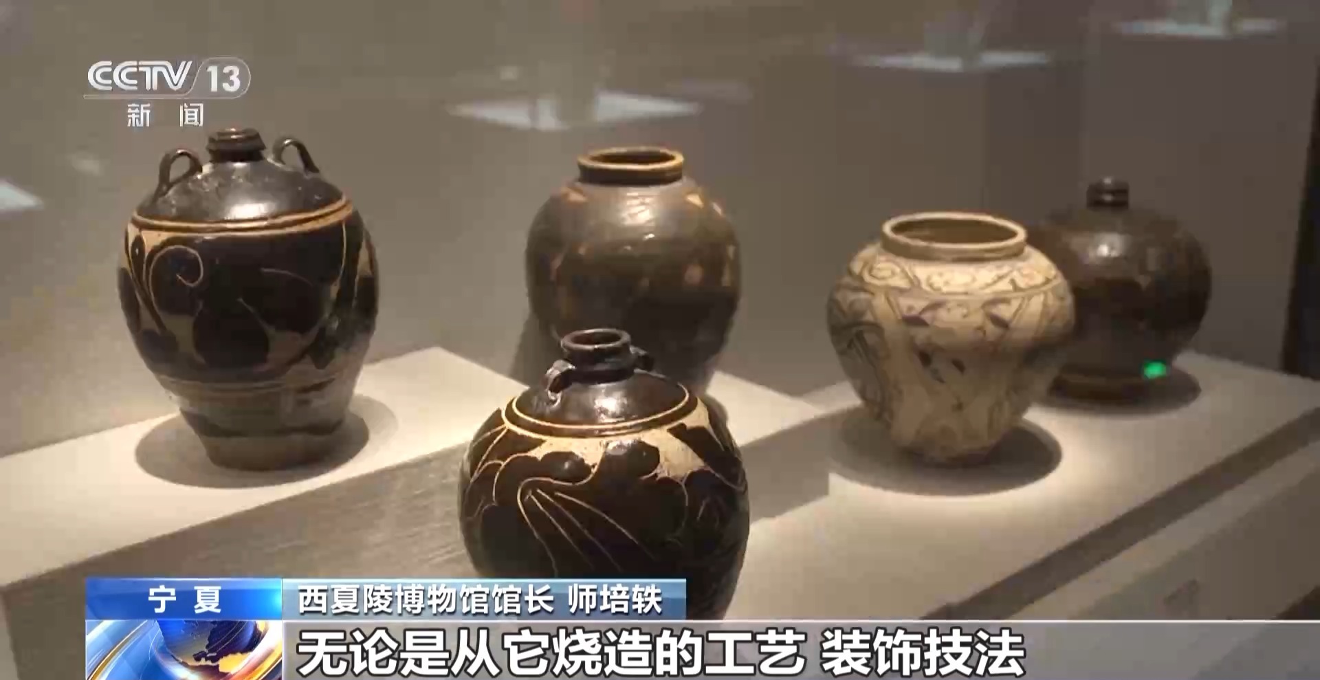 *西夏陵博物館館長 師培軼:*我們博物館館藏的西夏瓷器大約有800件,無論是從它的燒造的工藝,包括它的裝飾技法,比如説卷草紋、包括牡丹花的紋飾,是受中原傳統制瓷工藝的這種影響,這件小扁壺,就明顯地具有遊牧民族的特徵了,所以西夏的瓷器能夠體現多元文化的影響。