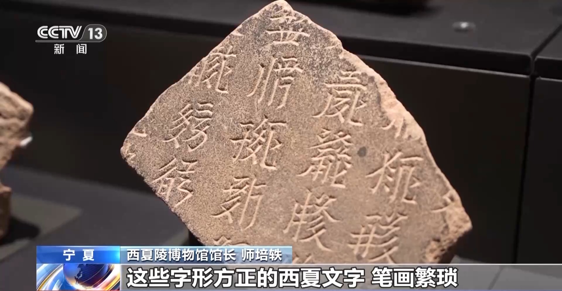 *西夏陵博物館館長 師培軼:*這些字形方正的西夏文字筆畫煩瑣,遠看都熟悉,但是近看不認識。
