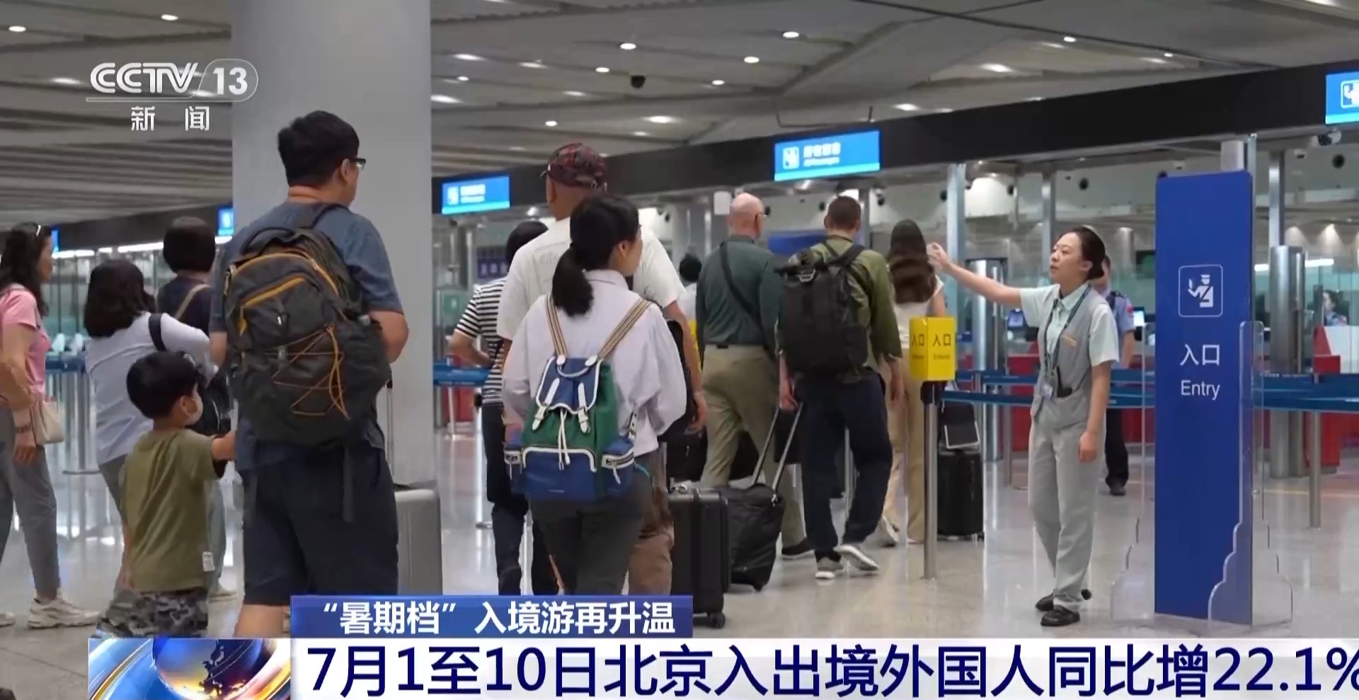 當前進入暑期,海外學生和親子家庭的研學入境遊人數也明顯增加,7月1日至7月10日,北京口岸出入境人員量達64萬餘人次,其中出入境外國人達17.1萬人次,同比增長22.1%。