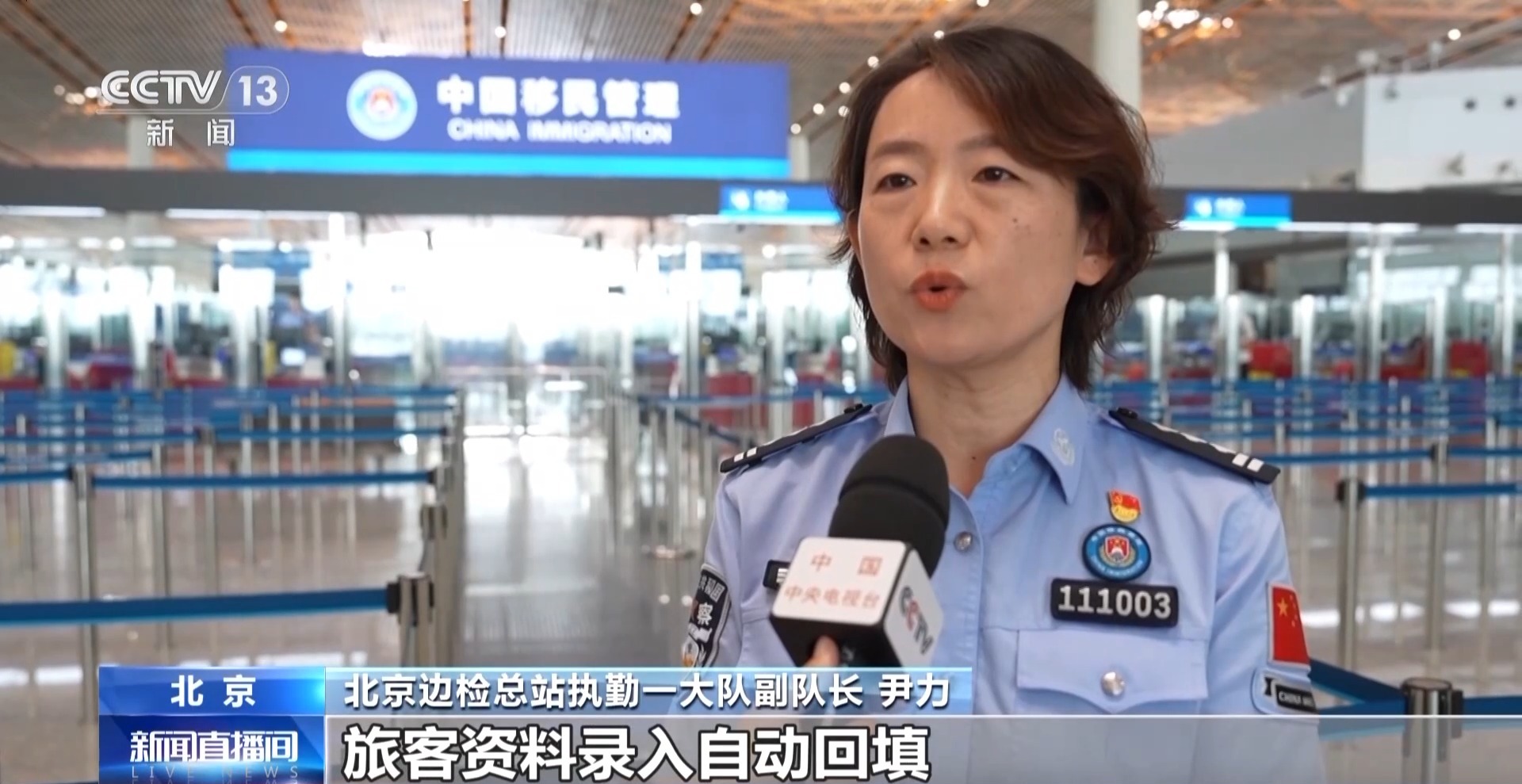 北京邊檢總站執勤一大隊副隊長 尹力*:*北京邊檢總站研發上線旅客資料錄入自動回填、航班旅客流量預測等8項應用程序,外籍人員通關效率提升約30%;在各執勤現場設立臨時入境許可簽發專用區域,新增11條臨時入境許可專用通道,推動臨時入境許可簽發效率提升60%。