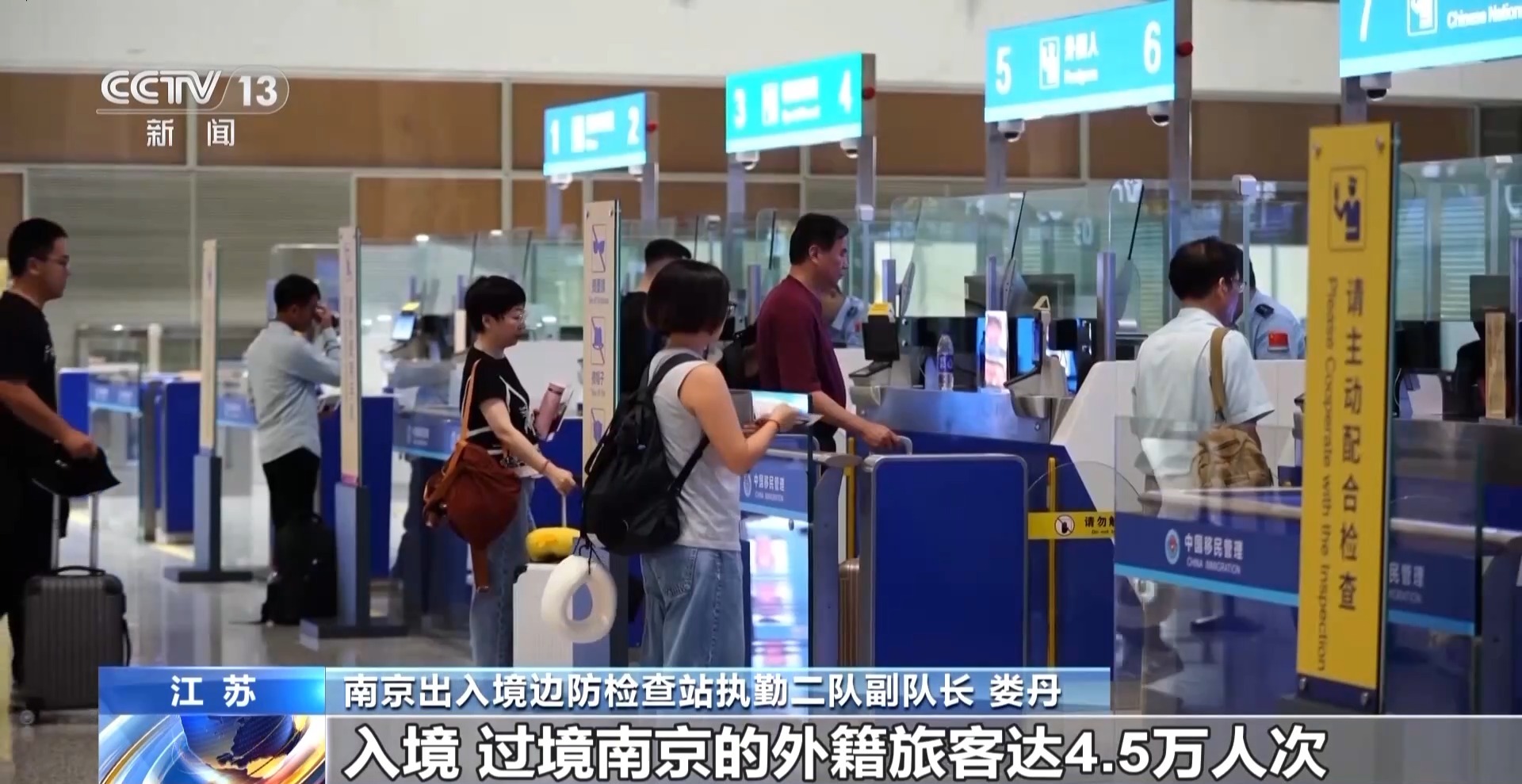 *南京出入境邊防檢查站執勤二隊副隊長 婁丹:*口岸流量旺的背後是政策持續的優化,上半年享受各類免籤便利入(過)境南京的外籍旅客達4.5萬人次,佔入境外籍旅客總數的60.55%。