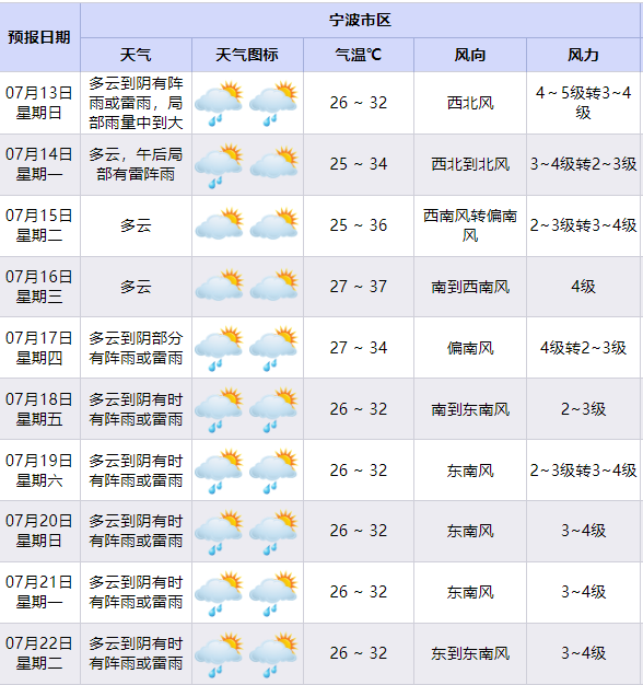 15-16日副熱帶高壓增強,晴熱高温重返,甬城的最高氣温會飆升至36~37℃局部38~39℃,盛夏炎熱的體感迴歸,大家的防暑降温工作不可鬆懈。17日起又多陣雨或雷雨天氣,屆時最高氣温又會有所下滑,炎熱體感會有所緩解。
