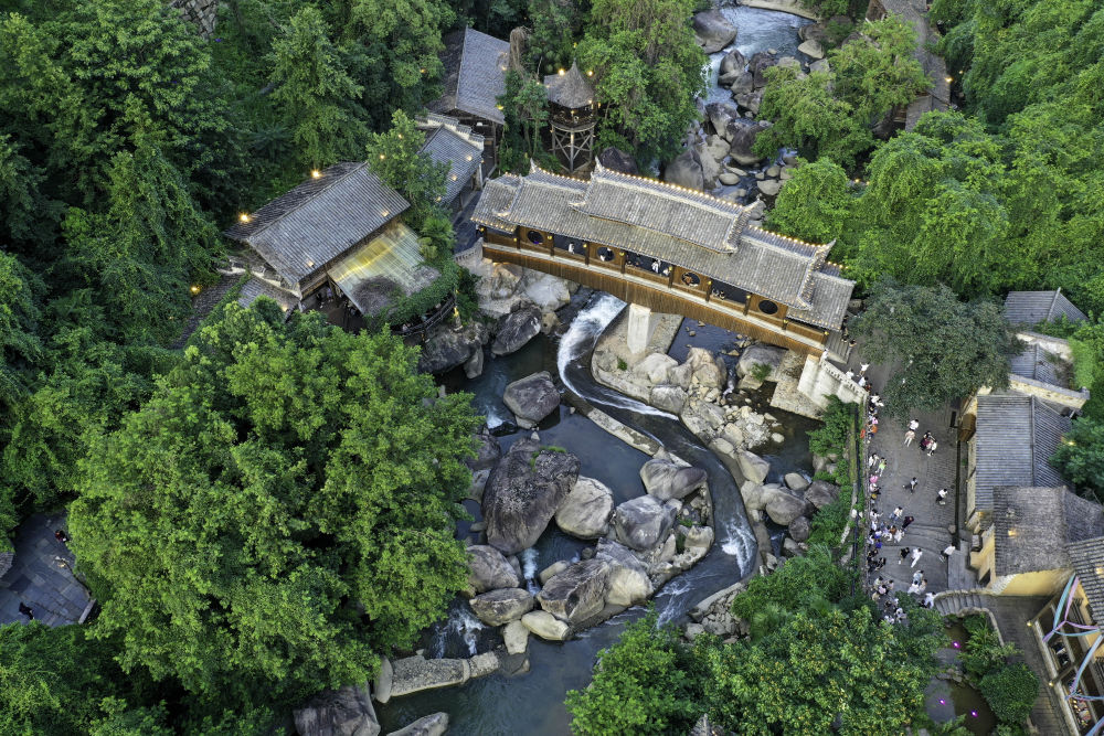 這是7月11日拍攝的望仙谷景區夜景(無人機照片)。新華社記者 劉金海 攝