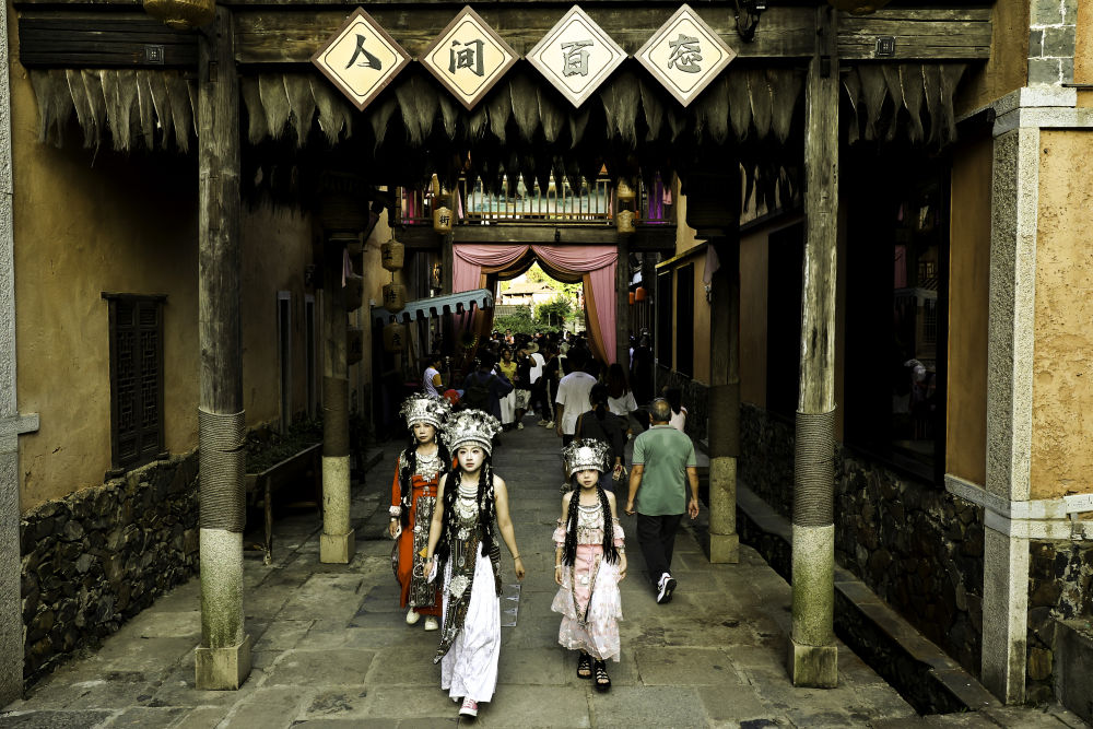 夜幕降臨,記者隨“活力中國調研行”採訪團來到景區,遠處懸崖燈火璀璨,如影視劇一般的場景在眼前浮現。遊客或沉浸式體驗情景劇、舞蹈劇、雜技等演出,或身着古裝拍照打卡,在熱鬧的氛圍裏感受“仙俠世界”的浪漫。