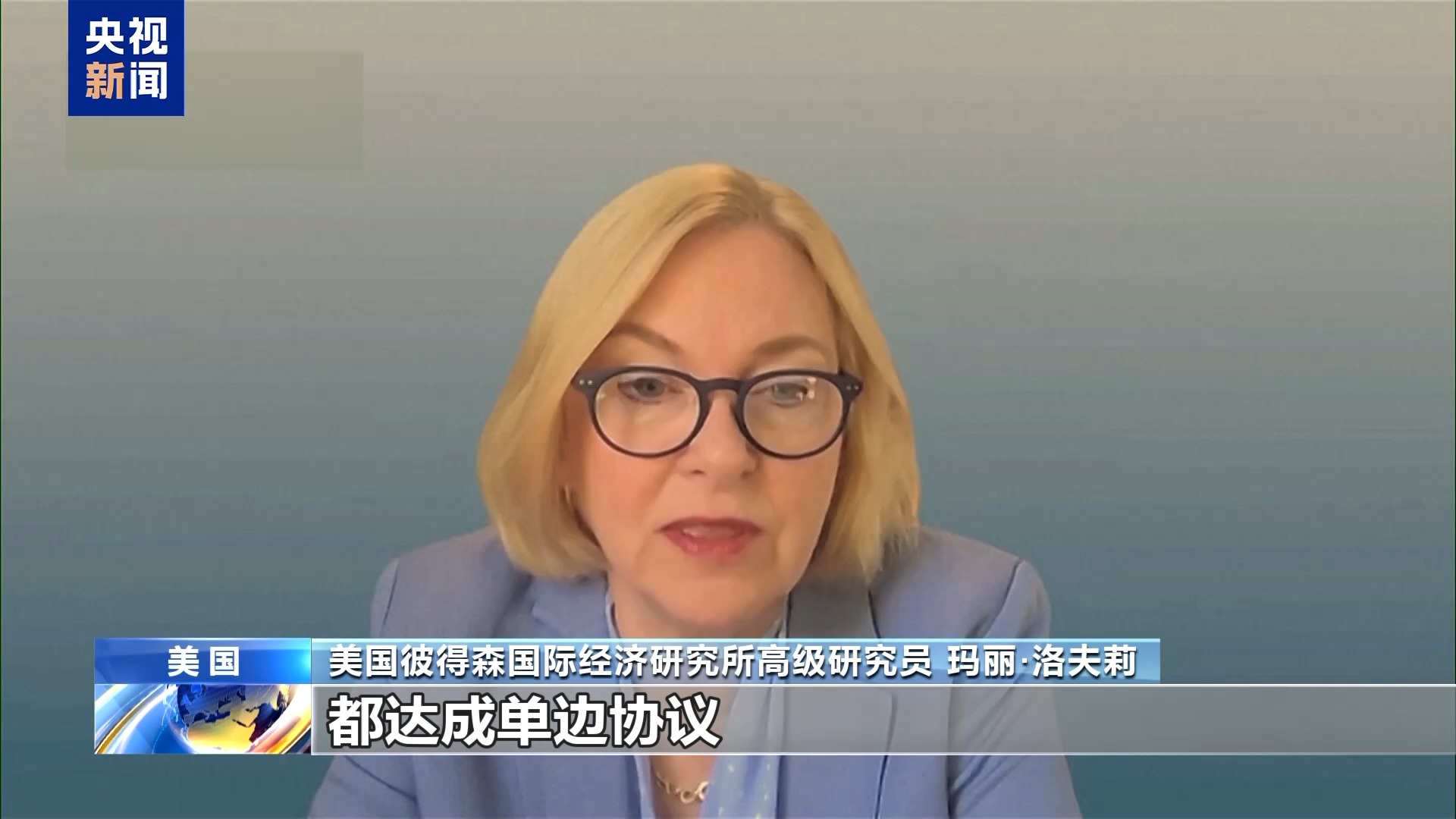 *美國彼得森國際經濟研究所高級研究員 瑪麗·洛夫莉:*美國幾乎是要所有貿易伙伴都達成單邊協議。美國政府已經向貿易伙伴明確表示,美國尋求的不是雙贏協議,而是分出輸贏。美國希望得到的比付出的多,事實上美國什麼都不想付出。