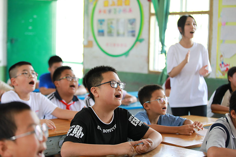 三明學院教育與音樂學院“一路陽光”教育關愛實踐隊的大學生志願者發揮專業優勢,結合羅坊中心小學師生實際情況,設計了豐富多彩的暑期支教內容,特別是通過美育教育提升他們的綜合素養。圖為音樂專業的大學生教唱《祖國不會忘記》,孩子們被歌曲背後的奮鬥故事深深吸引,稚嫩童聲唱響深沉愛國情。