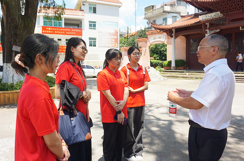 三明學院教育與音樂學院“戰時師魂傳承隊”師生一行,前往長汀、永安、大田三地,開展“溯源戰時內遷教育,傳承抗戰師魂新章”暑期社會實踐活動。圖為隊員們採訪林文清老師,並收集相關史實資料。