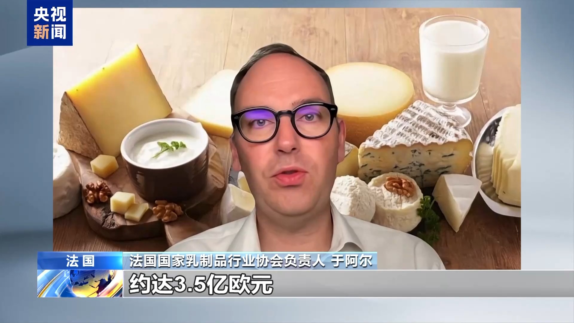 *法國國家乳製品行業協會負責人 於阿爾:*美國對我們來説是一個非常重要的市場,我們每年對美國出口乳製品金額約達3.5億歐元。其中奶酪佔比大,我們每年向美國出口25噸奶酪。所以這一消息令人震驚,儘管我們此前也多少有所預料,我們注意到關税調整幅度相當大,但30%這一數字着實令人震驚。這是美國向歐洲貿易伙伴發出的一個非常糟糕的信號。