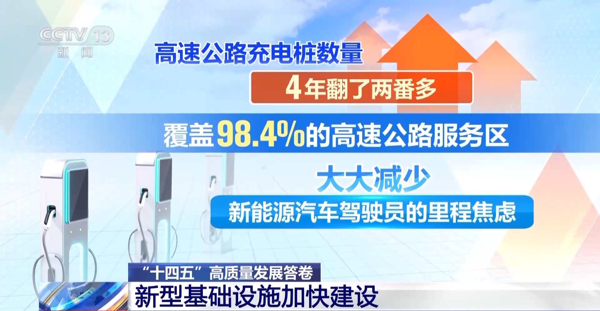 高速公路充電樁數量4年翻了兩番多,覆蓋了98.4%的高速公路服務區,大大減少了新能源汽車駕駛員的里程焦慮。