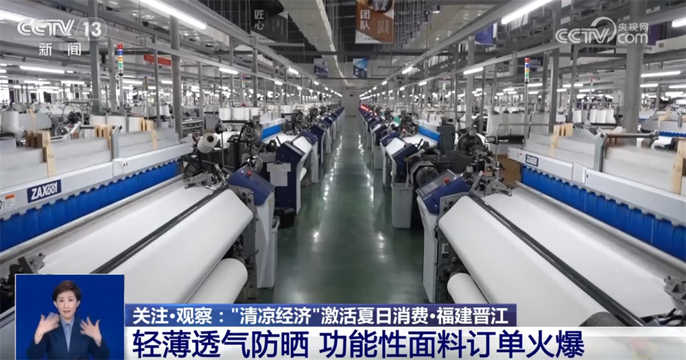 除了旅遊消費,盛夏時節,防曬產品也迎來銷售旺季。在福建晉江,這裏的多家服裝生產或紡織面料企業生產的涼感、速幹、驅蚊、防曬等功能性面料訂單火爆,備受市場青睞。
