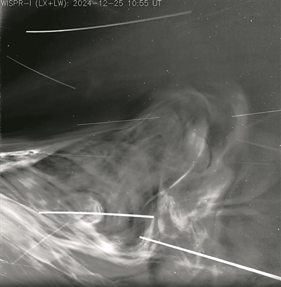 “帕克”探測器於2018年發射升空,任務是深入研究太陽外層大氣——日冕。去年12月24日,它飛至距離太陽表面約610萬公里處,這是人類探測器首次進入太陽大氣內部運行。此次飛行中,“帕克”利用其寬視場成像儀拍攝了大量高清圖像,記錄了太陽日冕結構及太陽風的釋放過程。