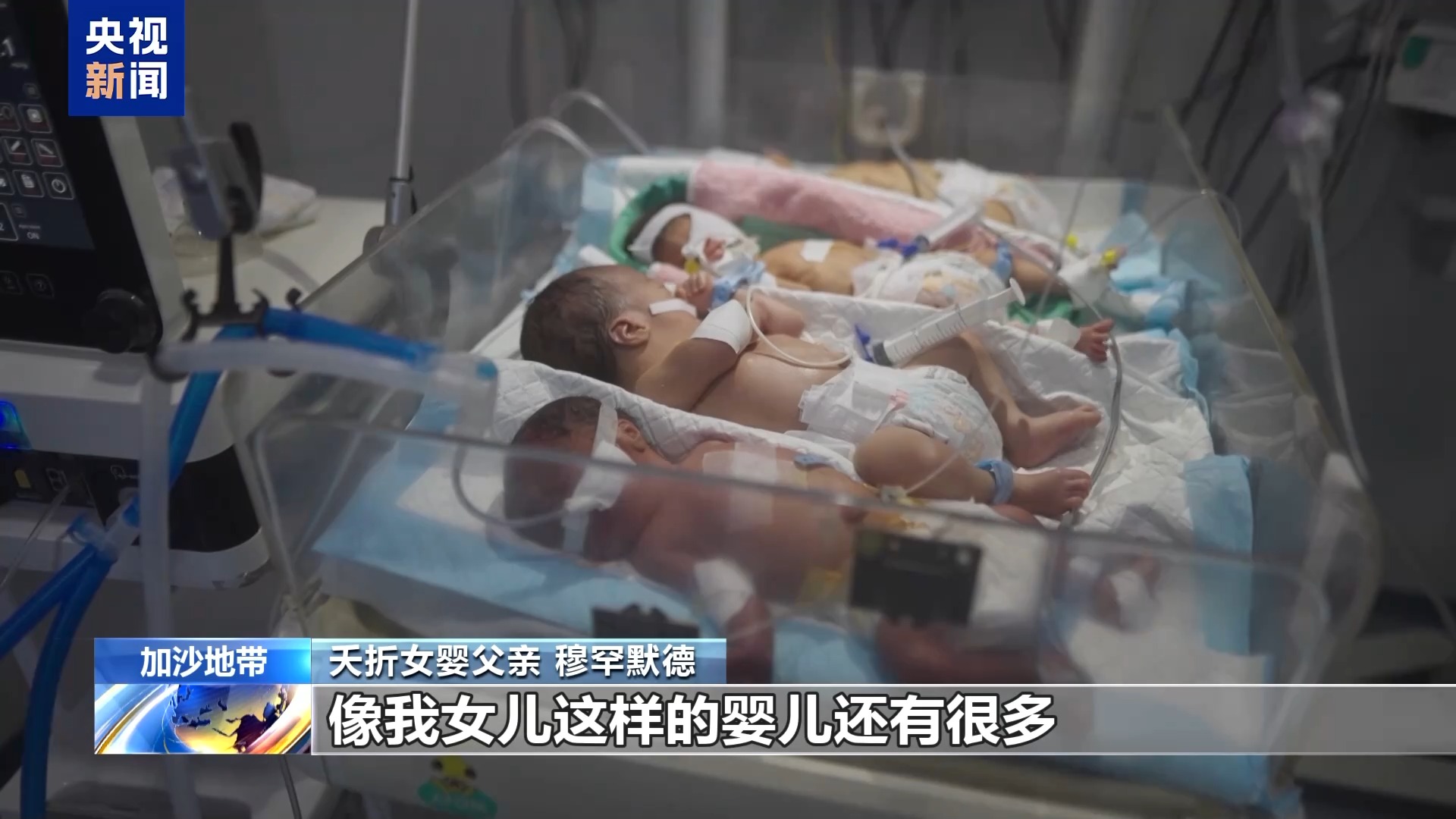總枱報道員 奧薩馬:我們現在所在的位置是加沙地帶希法醫院的早產兒監護病房,這些嬰兒完全依賴呼吸機和保温箱維持生命。但由於燃料短缺,該病房已無法繼續長時間運轉,隨時可能停止服務,威脅着幾十名保温箱中嬰兒的生命。就在我們在這裏拍攝的同時,一名女嬰剛剛去世,孩子的母親目前正在重症監護室接受救治。當時她從廢墟下被救出,醫生隨後從她腹中取出胎兒,但由於缺氧,孩子不幸夭折,這就是目前希法醫院產科的真實情況。