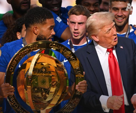 世俱杯決賽“尷尬一幕”:特朗普頒獎後留在台上慶祝,身旁切爾西球員一臉困惑