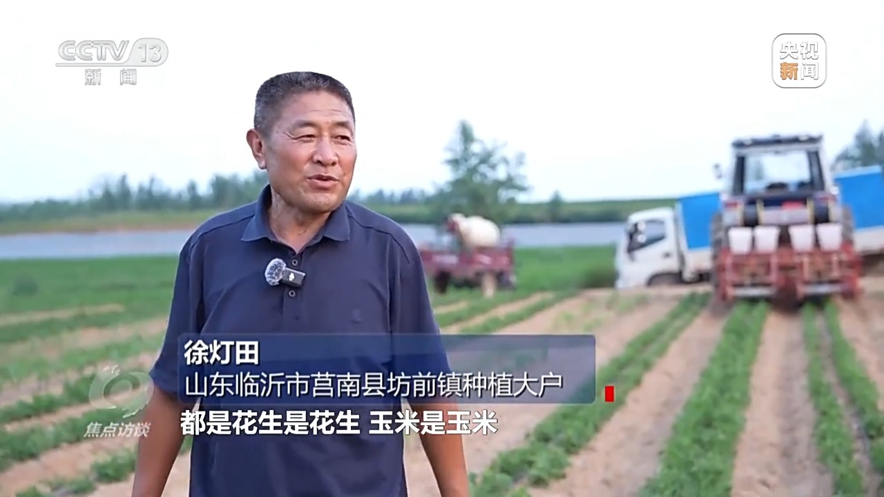 *山東臨沂市莒南縣坊前鎮種植大户 徐燈田:*之前種植,花生是花生、玉米是玉米,都是分開種的,今年頭一次花生和玉米複合種植,種地30多年,今年頭一次這種種法,投資這麼高,擔心管理不好會賠本。