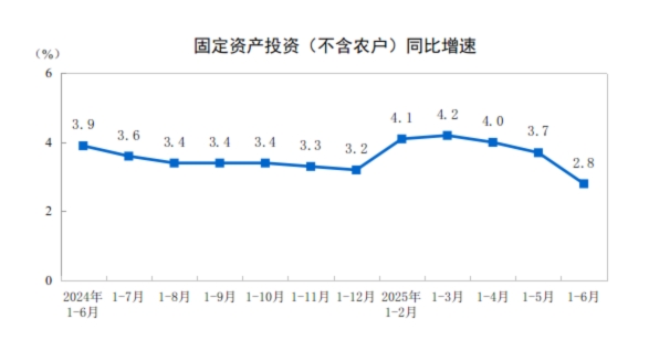 國家統計局:2025年上半年全國固定資產投資增長2.8%