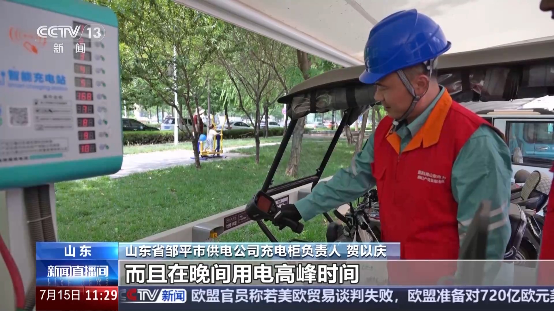 *山東省鄒平市供電公司充電櫃負責人 賀以慶:*我們的充電站配備了噴淋、熱成像火焰探測器等設施,而且在晚間用電高峯時間,會自動開展設備巡檢和紅外測温,進行智能監控。
