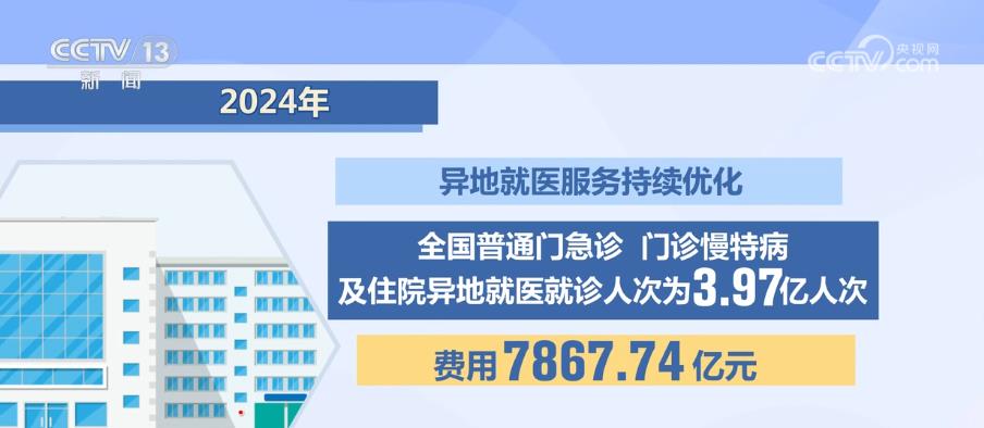 2024年,異地就醫服務持續優化,全國普通門急診、門診慢特病及住院異地就醫就診人次為3.97億人次,費用7867.74億元。