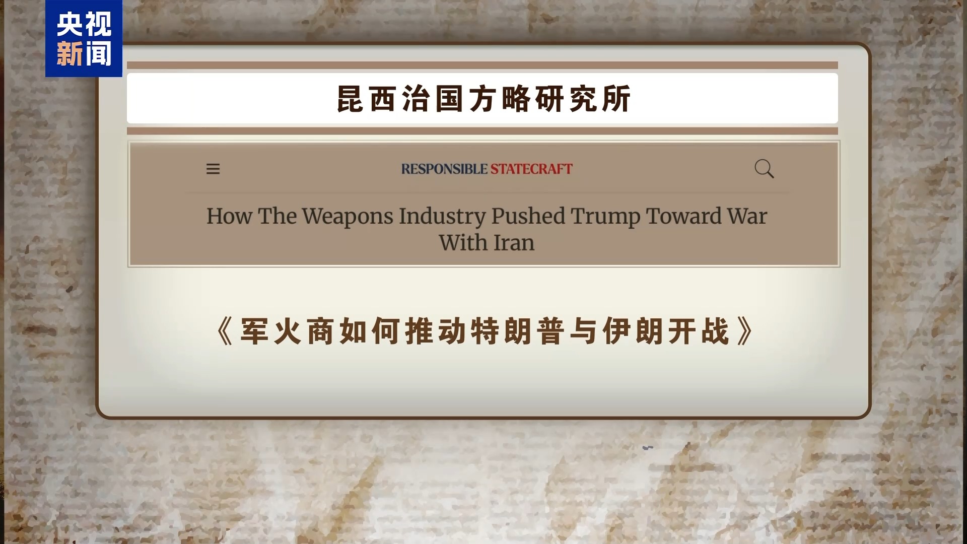 美國智庫昆西治國方略研究所近期發表一篇文章,題為《軍火商如何推動特朗普與伊朗開戰》。文章説,在上個月美國空襲伊朗核設施前,美國一些代表軍工企業的嘉賓輪番出現在福克斯新聞節目中,稱讚以色列對伊朗的打擊行動,並敦促美國進一步介入。而一旦美國和以色列與伊朗爆發戰爭,這些企業一定將從中獲利。