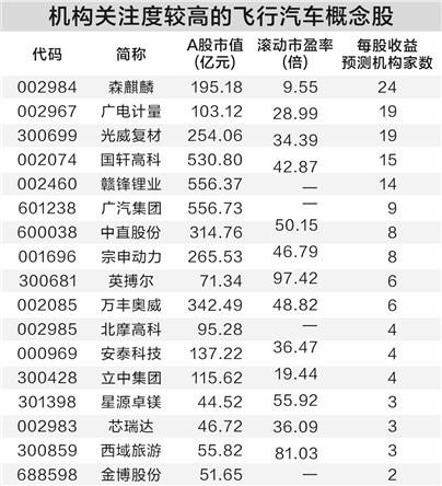 飛行汽車概念股中,誰最受機構青睞?據證券時報·數據寶統計,機構給予“積極型”評級(含買入、增持、強烈推薦等)家數最多的是森麒麟,合計有24家券商研報提及該股;廣電計量、光威復材、國軒高科、贛鋒鋰業均有10家以上券商研報提及。