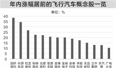 A股市場涉及低空經濟領域飛行汽車方向的概念股有30餘隻,截至7月15日收盤,概念股合計A股市值超5000億元。今年以來飛行汽車概念股平均上漲6.17%,小幅跑贏同期上證指數。8股累計漲幅超20%,其中國軒高科、長源東谷、松芝股份、標榜股份、北摩高科漲幅靠前。