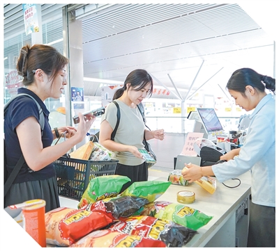 “出差在外好幾天,這次給女兒買點禮物帶回家,都是平常她沒看過、沒吃過的東西,給她個驚喜!”收銀台前,張先生一邊結賬,一邊給記者展示他給女兒買的禮物:兩個靈動的甲殼蟲鐵盒上寫滿法語,裏面裝有糖果;一個來自英國的八音盒,裏面還藏着巧克力……