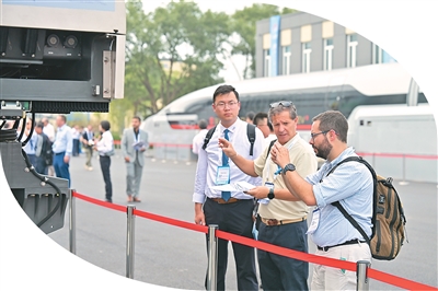 復興號模擬駕駛艙排起了長隊,圍得裏三層外三層。穿過隧道、跨越河流、橫渡橋樑……“體驗感太真實啦!”來自清華附中的學生駕駛模擬“復興號”興奮地説。中國鐵道科學研究院信息所副所長趙向紅介紹,高鐵自動駕駛技術集成大數據、人工智能、5G通信等前沿科技,提升列車運行的安全性與準點率,為旅客帶來更安全、舒適、高效的出行體驗。