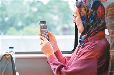走進試乘的CR400BF-GS復興號智能提升動車組列車,26攝氏度,温度宜人,窗外漸次閃過50餘種不同類型的線橋隧試驗場景。整個體驗之旅,線路不長,風景不少,新鮮感十足。30分鐘的試乘時間裏,高鐵列車急速駛過中國鐵道博物館(東郊展館)、北京朝陽動車運用所,穿行隧道、滑入彎道,在直線行駛時不斷加速,乘坐平穩舒適,車廂內中外嘉賓一起感受到了中國高鐵的先進技術和卓越性能,車廂外,沿途的參觀者們紛紛拿起手機拍照記錄。“這就是中國高鐵,創新、高效、便捷!”在現場參與體驗的英國博主亞當(Adam)感嘆。