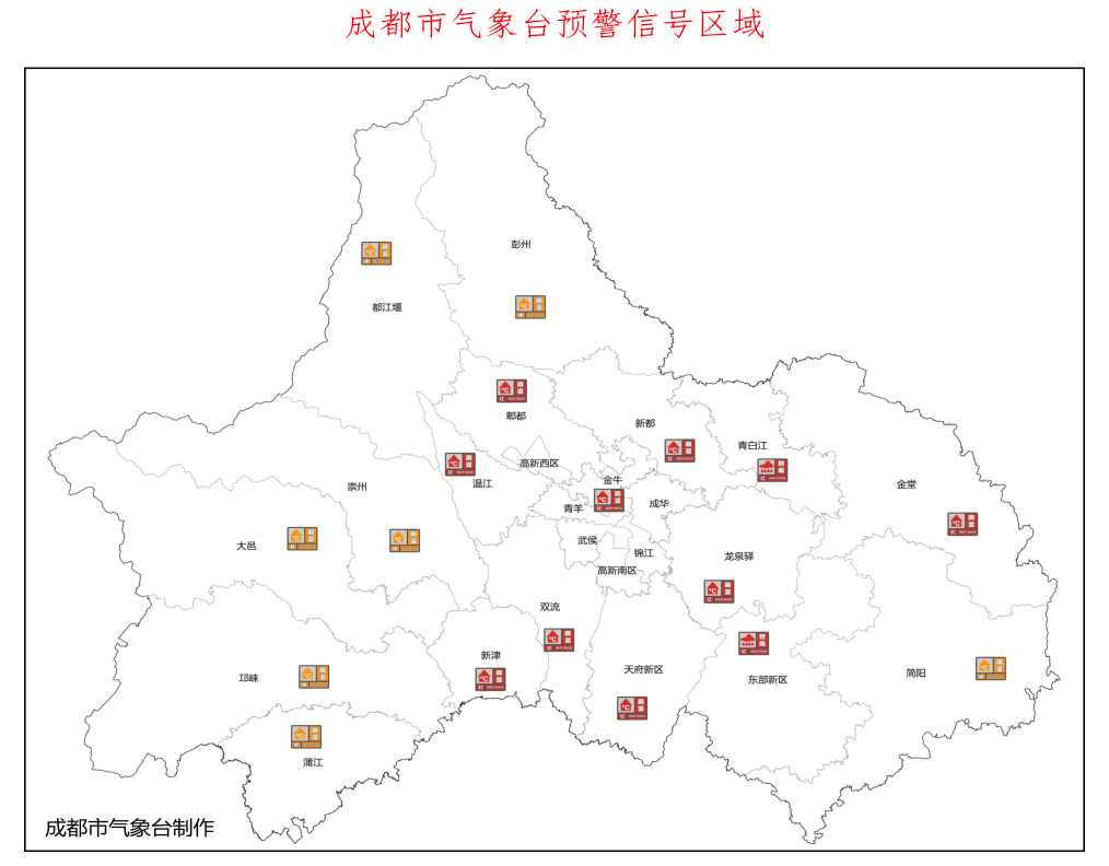 成都市氣象台7月16日10時00分更新高温橙色預警信號為高温紅色預警信號:預計我市武侯區、錦江區、青羊區、成華區、金牛區、高新南區、高新西區和青白江區的所有鎮(街道)今日最高氣温將升至37℃以上,東部新區的大部分鎮(街道)今日最高氣温將升至40℃以上,高温時段主要出現在12-19時。預計高温天氣將持續至18日,請注意防範高温帶來的不利影響。目前我市彭州、都江堰、崇州、大邑、邛崍、蒲江和簡陽發佈高温橙色預警信號,其餘區(市)縣發佈高温紅色預警信號。