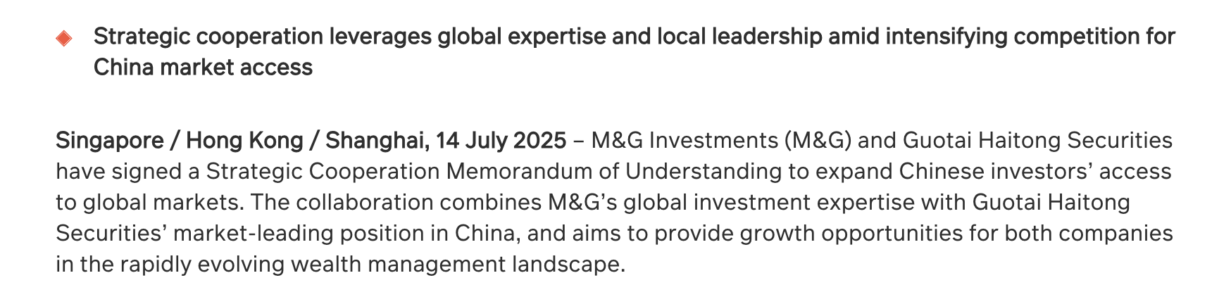 M&G Investments與國泰海通證券達成戰略合作 拓寬中國投資者全球投資渠道