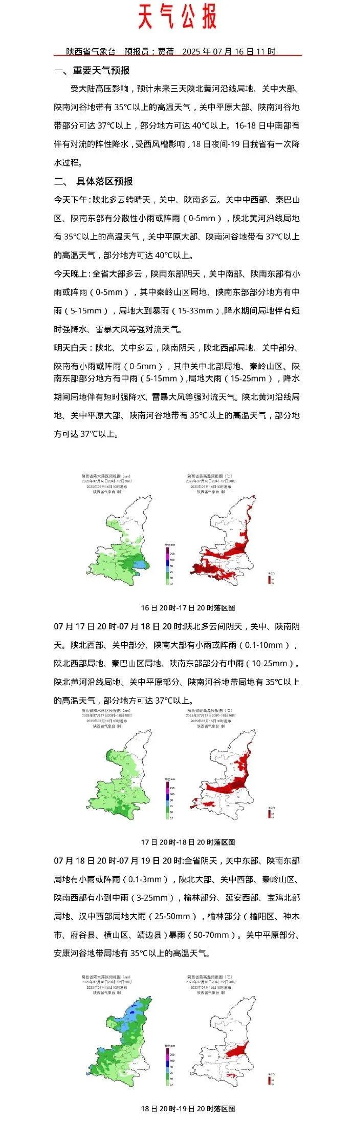 陝西省氣象台7月16日10時發佈