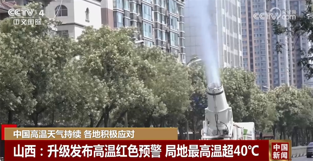 15日12時,山西省氣象台升級發佈高温紅色預警信號,預計未來24小時,臨汾、運城等地最高温將升至40℃以上。為此,臨汾等地的環衞部門利用小型清洗車、高壓沖洗車、霧炮車等對道路進行噴灑作業,並加大作業頻次,以降低地表温度。一些户外勞動者驛站也為前來納涼的羣眾提供解暑飲品、藥品等。
