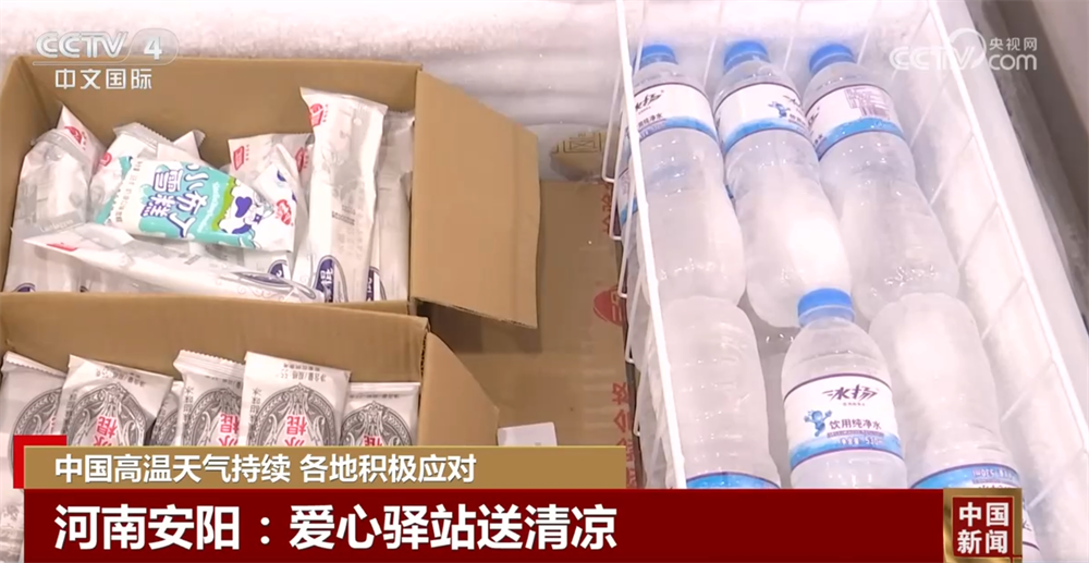 為應對高温天氣,在河南安陽市滑縣的一處户外勞動者愛心驛站內,空調冷風徐徐,飲水機、冰櫃、應急藥箱等設施一應俱全,驛站全天候開放,24小時為户外勞動者提供服務。