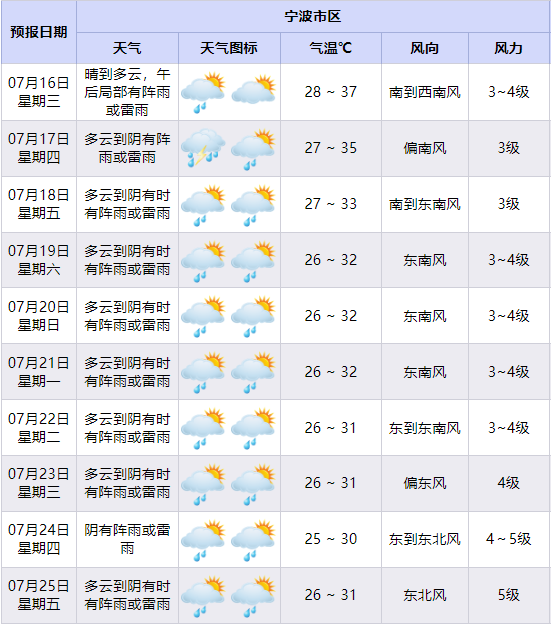 明天起雨水天氣將再次成為天氣舞台的主角,隨着後續海上低壓系統的活動愈發頻繁,穩定的東南氣流將會把海上充足的水汽持續向我市輸送,因此陣雨或雷雨為主的天氣將持續至下週。不過雨水為主的天氣中,沒有了太陽的持續發力,氣温也自然會受到壓制,18日起氣温將告別高温線,隨後逐漸下降至30℃附近。
