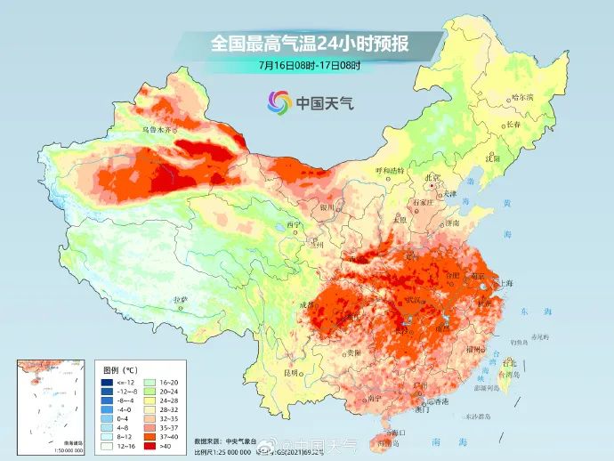 大範圍高温過程目前正處於最強時段,高温何時能減弱?預計受冷空氣影響,17日起黃淮東部到江淮一帶高温縮減;南方則是冷空氣和降雨共同影響,18日後高温快速減退,高温自北向南大幅收斂。