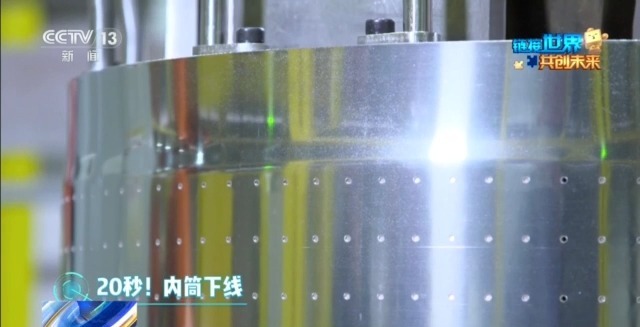 零部件運到工廠,生產環節馬上跟上,“鏈上很忙”在這裏的體現尤為具體:洗衣機內筒採用激光無縫焊接技術,能夠保護高端面料衣物不受損壞。從不鏽鋼卷和鋼板開始生產,內筒產線每20秒就能下線一個內筒。工廠的生產線可以同時生產320種型號的洗衣機。從原料到一台完整的洗衣機,最快只需38分鐘。