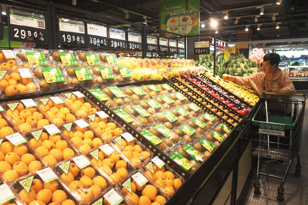 6月9日,顧客在河北省石家莊新樂市一家超市選購水果。新華社發(賈敏傑攝)