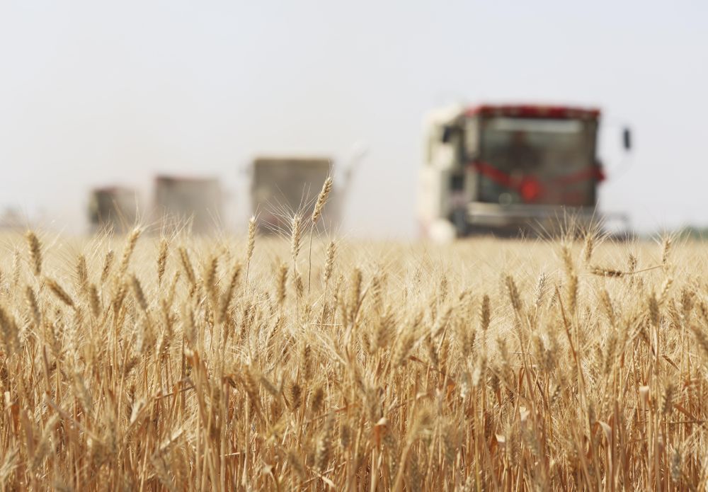 6月10日,河北省石家莊市欒城區柳林屯鄉東牛村村民駕駛農機收割小麥。新華社發(樑子棟攝)