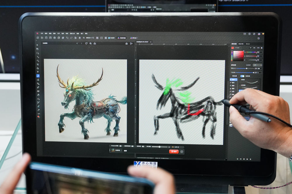 6月20日,在北京石景山區中關村科幻產業創新中心,工作人員展示悟空圖像軟件的AIGC功能。新華社記者 鄭煥松 攝