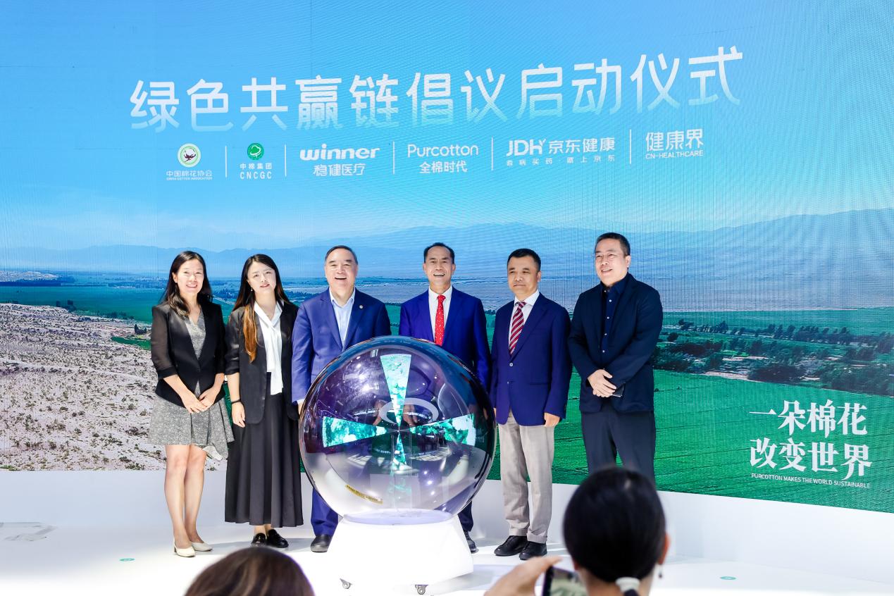 在綠色發展理念的指引之下,展會首日下午,穩健醫療與全棉時代聯合中國棉花協會、中華棉花集團、京東健康、健康界等行業夥伴,共同發佈了《綠色共贏鏈倡議》。中國上市公司協會會長宋志平出席並致辭,強調了供應鏈綠色化對於企業發展和產業升級的重要性。該倡議旨在呼籲上下游企業攜手共建大健康可持續合作生態,通過提升供應鏈的“含綠量”,實現企業發展的“含金量”,共同推動產業和社會向綠色、科技、可持續方向邁進。