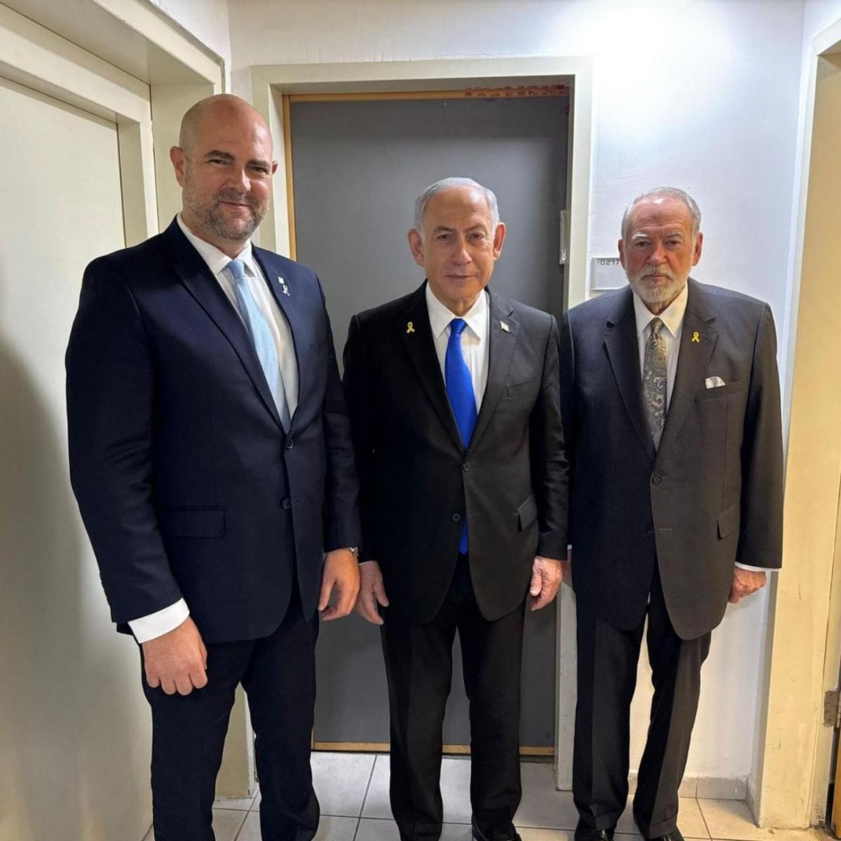 美國駐以大使赫卡比(右)16日與內塔尼亞胡合影 圖源:外媒