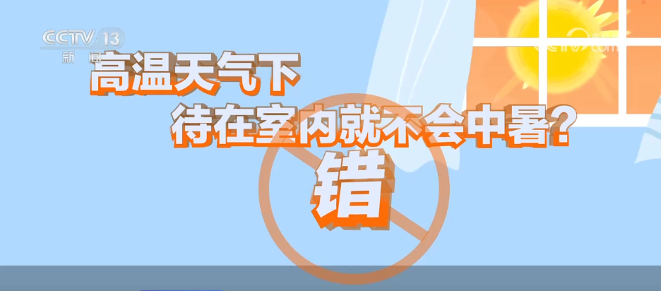 高温天氣下,待在室內就不會中暑?錯。“室內≠安全”,高温天氣下,即使足不出户,仍然可能中暑。專家表示,中暑是由於人體內的熱量不能及時散發出去,造成的體內蓄熱,所以如果室內温度高,濕度大又不通風,如果不開空調或者電風扇,就給中暑提供了環境條件。由於老年人體温調節機能相對比較弱,就更容易發生中暑。